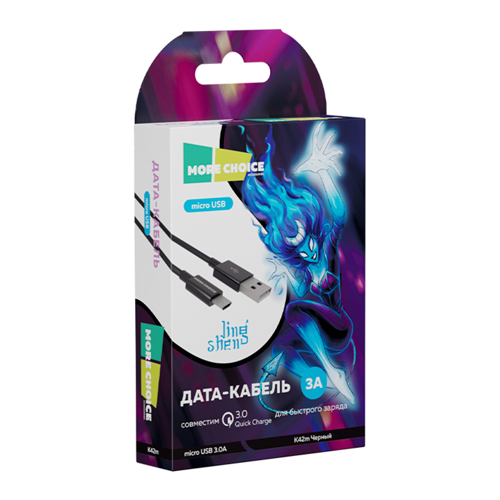 Дата-кабель для зарядки MoreChoice K19m 1м USB для micro USB 2.0А, черный, 1 м