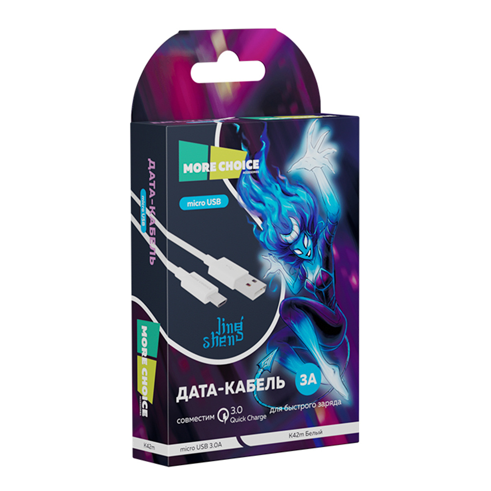 Дата-кабель для зарядки MoreChoice K19m 1м USB для micro USB 2.0А, белый, 1 м