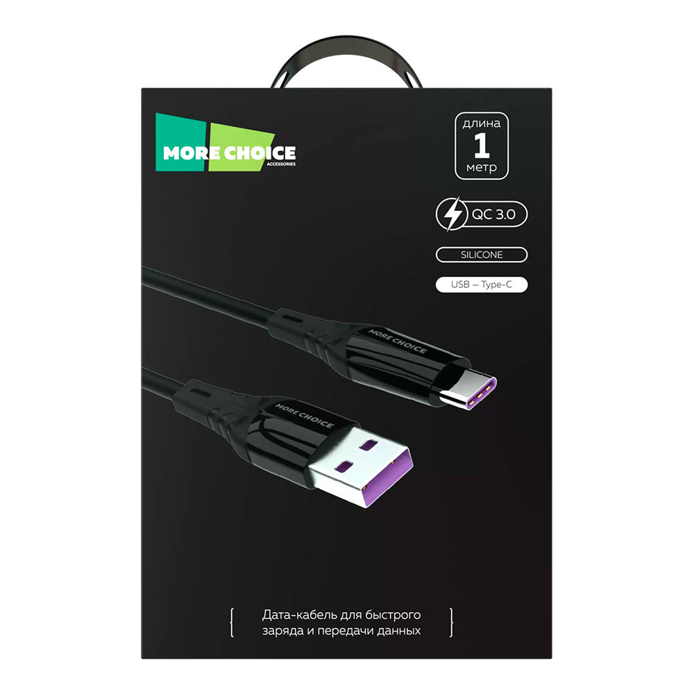 Дата-кабель для зарядки MoreChoice K63a Type-C 3.0A, черный, 1 м