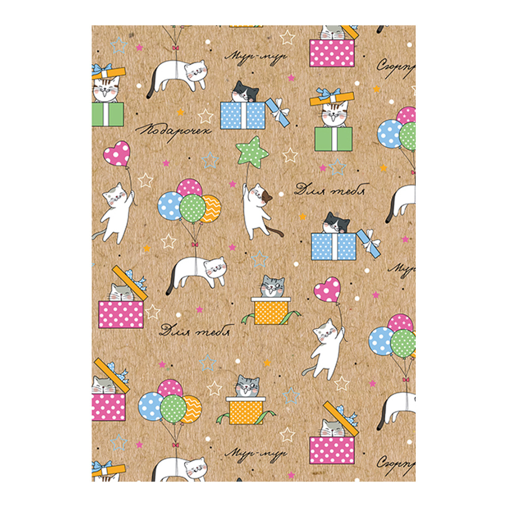 Бумага упаковочная Ч45054_1 крафт, Коты с подарками, 78 г/м² 100*70 см
