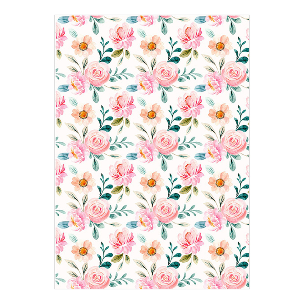Бумага упаковочная Ч47944_1 глянцевая, Пионы акварель 80 г/м² 100*70 см, белый, розовый