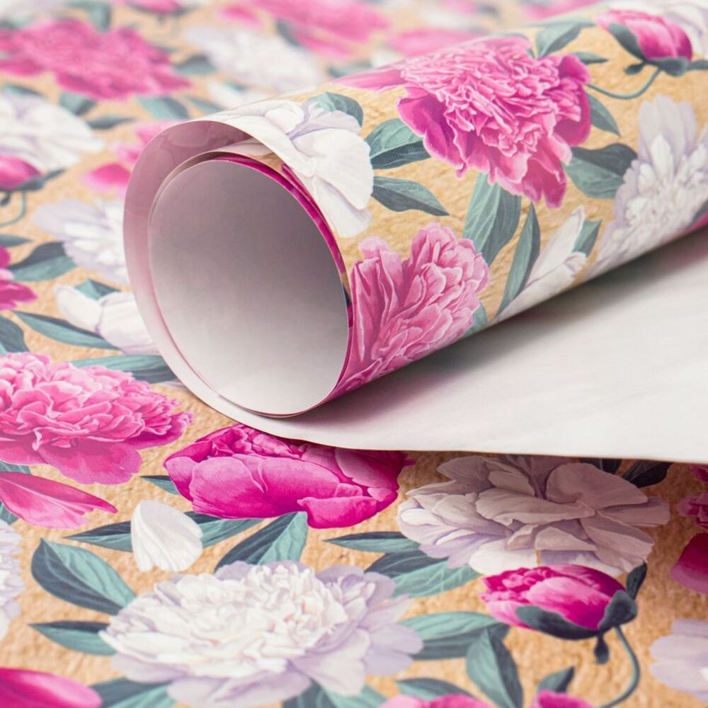 Бумага упаковочная Ч47921_1 глянцевая, Пионы, 80 г/м² 100*70 см