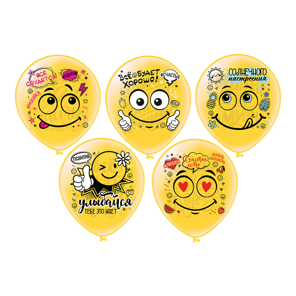 Шарик воздушный ч44909 Смайл кристалл,с рисунком,5 дизайнов d=30см, 1 шт