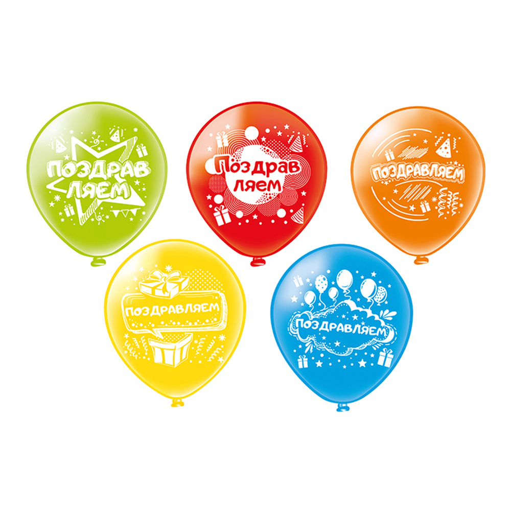 Шарик воздушный Ч42197 Поздравляем,с рисунком,5 дизайнов d=30см, 1 шт