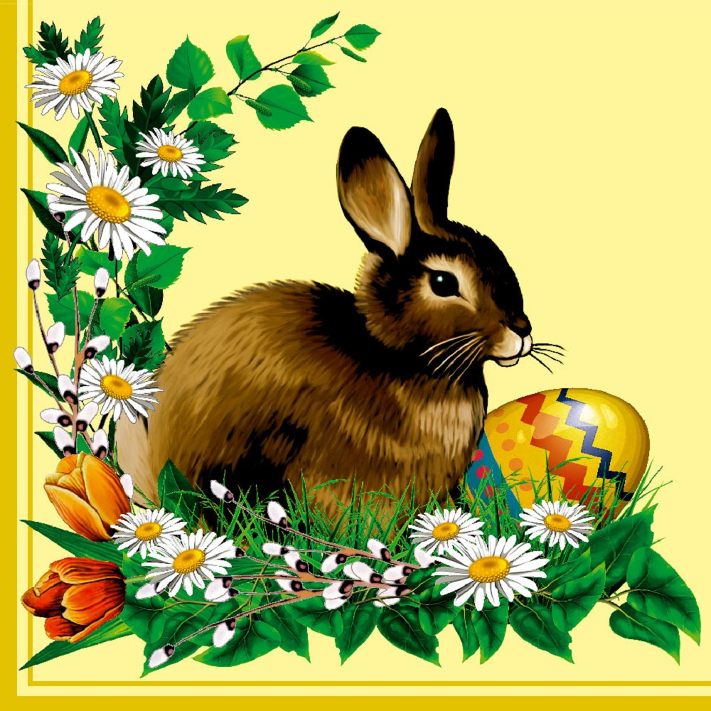 Салфетки бумажные Фреско двухслойные, 33*33 см, пасхальный кролик, 20 листов