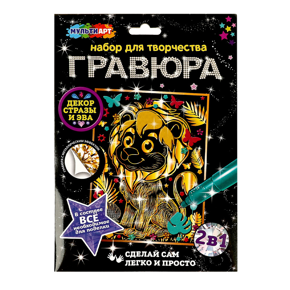 Гравюра MultiArt SCRATCH-CLR-MADEC золотая, Львёнок, 18*24 см, 1 шт
