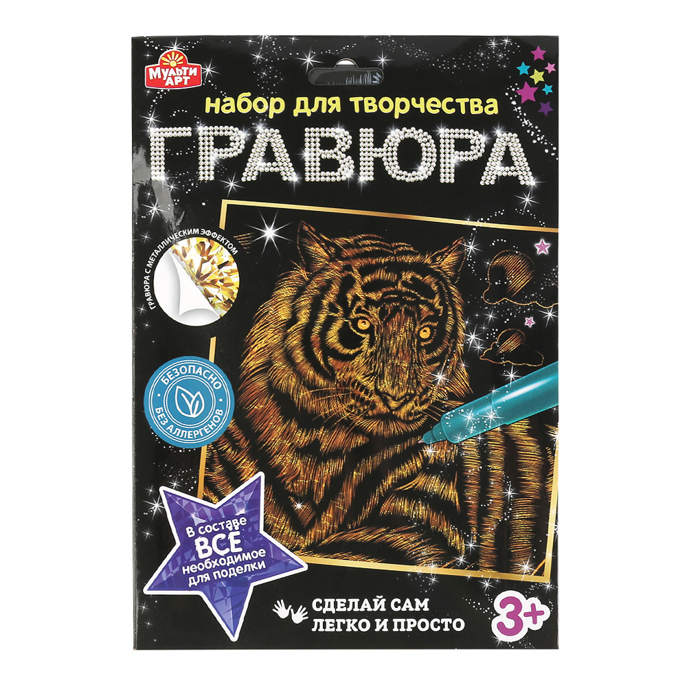 Гравюра MultiArt 100SCRATCHART-GOLD-TIGER золотая, Тигр, 18*24 см, 1 шт