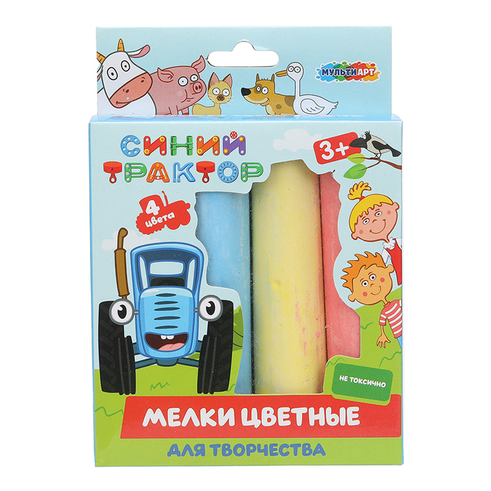 Мелки для рисования MultiArt Синий трактор 100MEL4-STR-WOT квадратные, цветные, 4 цвета