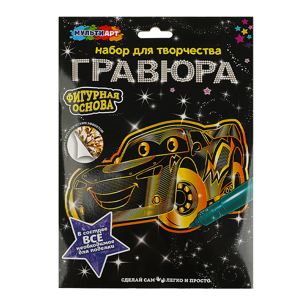 Гравюра MultiArt SCRATCH-GOLD-FIG золотая, Машина, А4, 1 шт