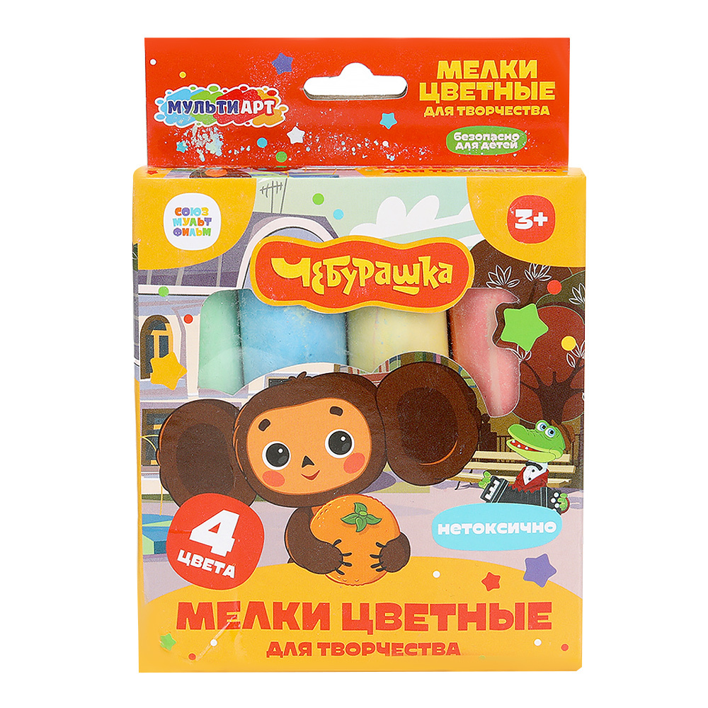 Мелки для рисования MultiArt Чебурашка MEL4-113543-WOT квадратные, цветные, 4 цвета