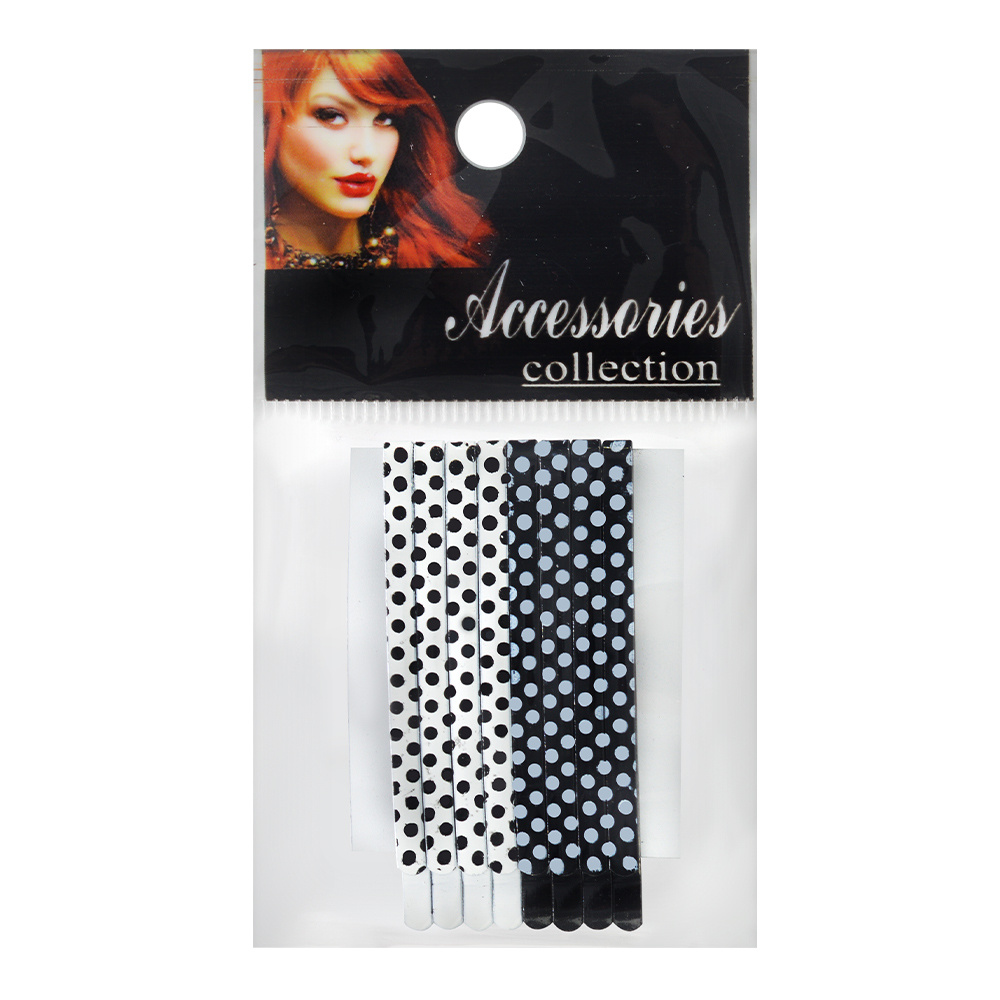 Невидимка для волос 8068 HCL15 OPP, черно-белый горошек, 8 шт