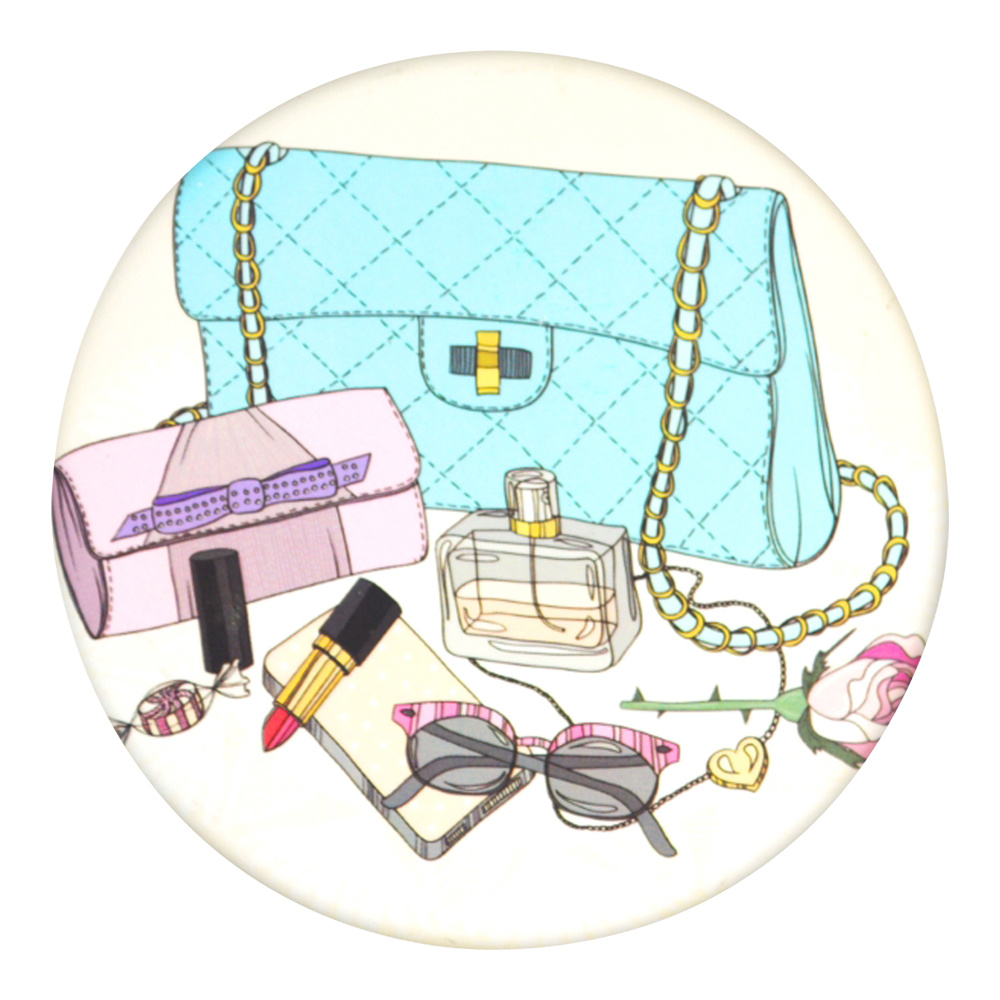 Зеркало 7224 карманное, круглое, двойное с увеличением, Лабутены, 7,5 см