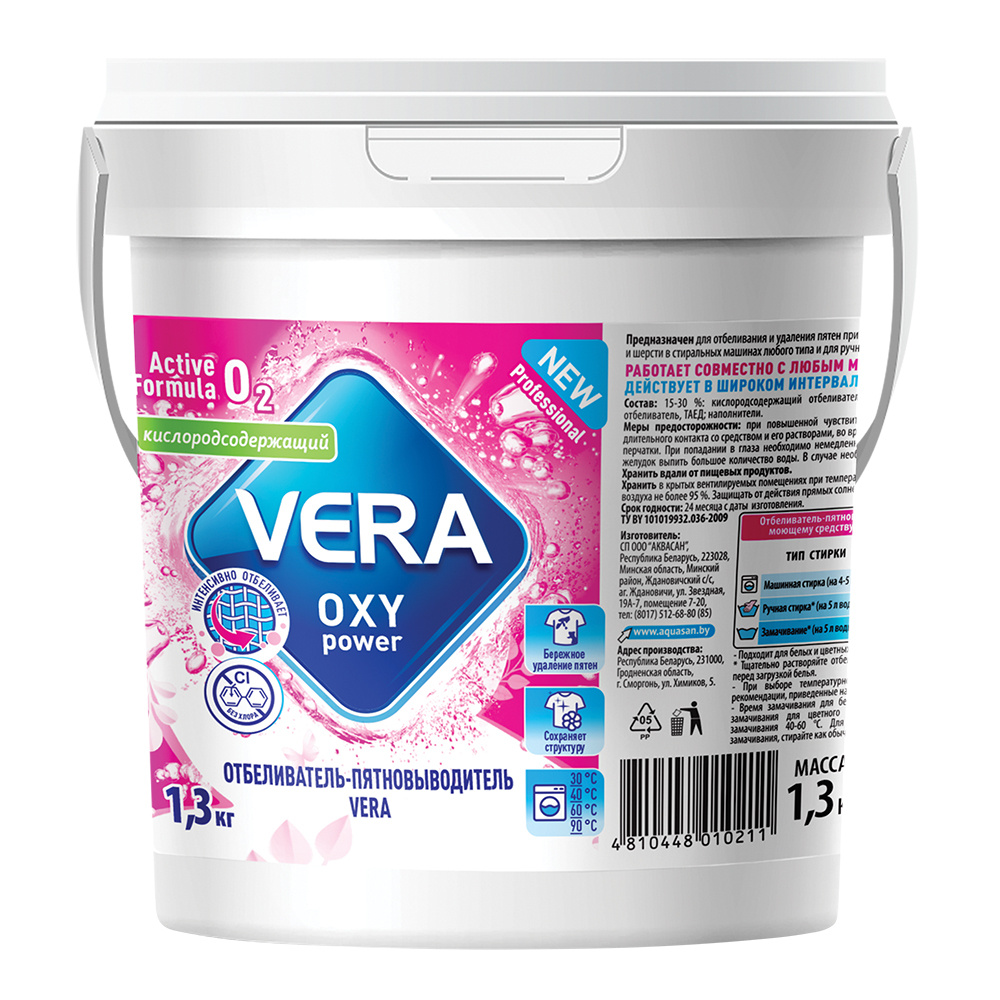 Пятновыводитель Vera Oxy power Кислородный отбеливатель, порошок, 1,3 кг