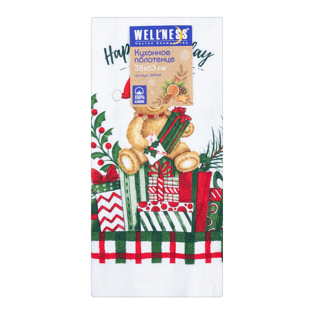 Полотенце кухонное Барни 100% хлопок, новогоднее 38*63 см