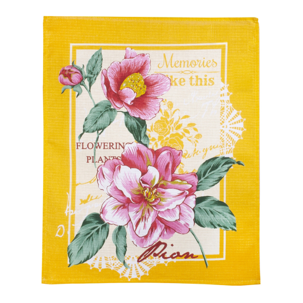 Полотенце кухонное вафельное, Пионы, плотность 160г/м 45*60 см