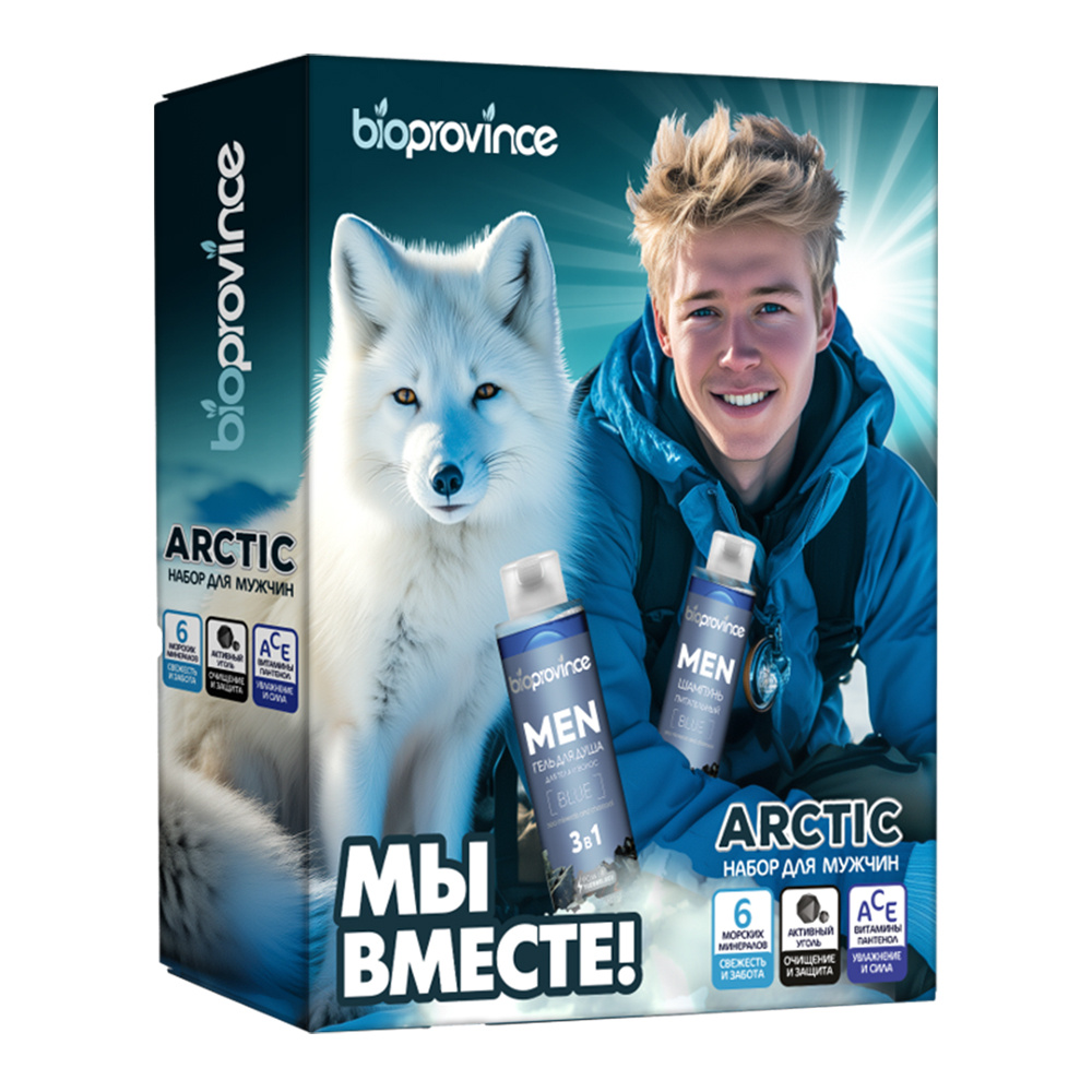 Набор подарочный BioProvince ARCTIC Песец (шампунь 250мл + гель для душа 3 в 1 250мл), мужской