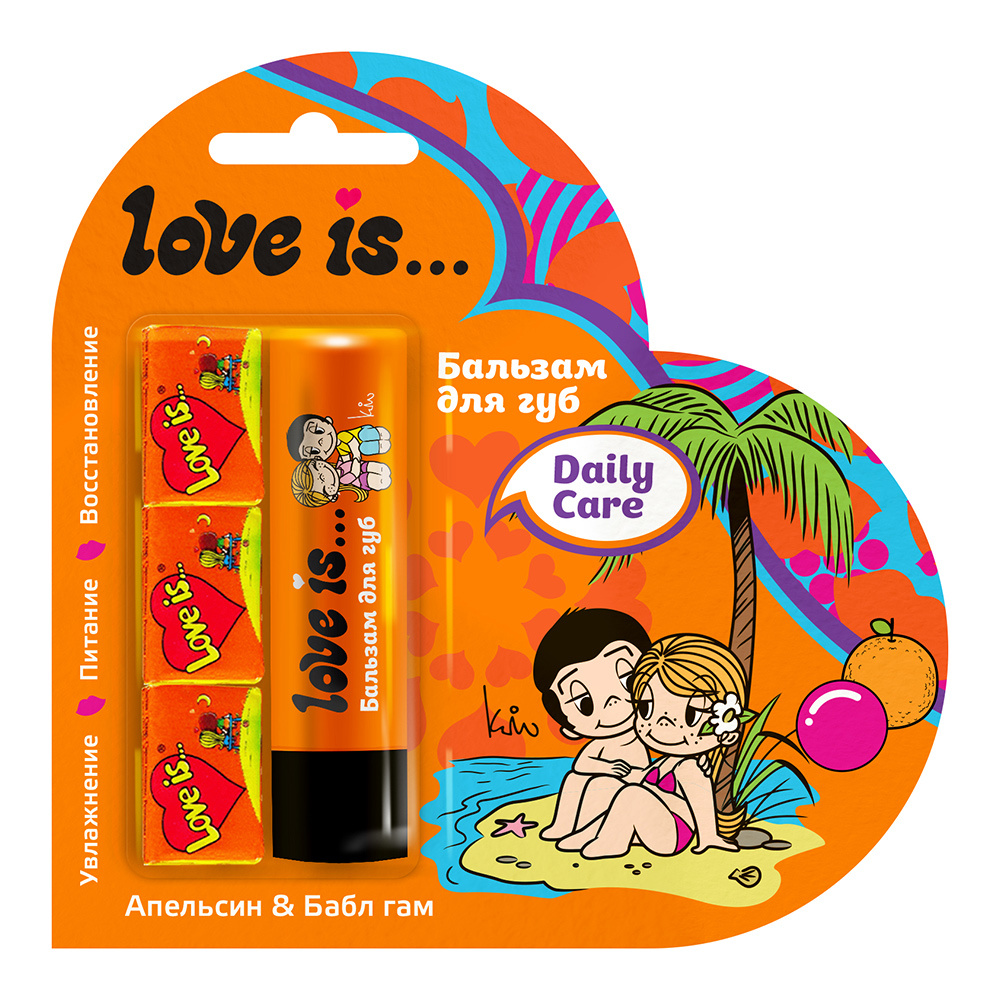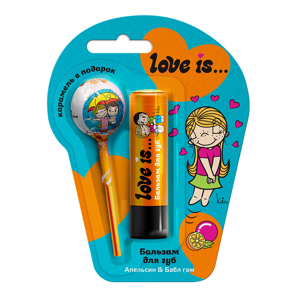 Бальзам для губ Love is Апельсин-бабл гам + жевательная резинка в подарок