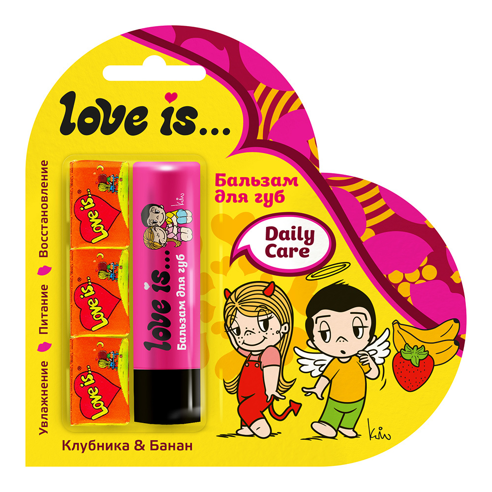 Бальзам для губ Love is Клубника-банан + жевательная резинка в подарок