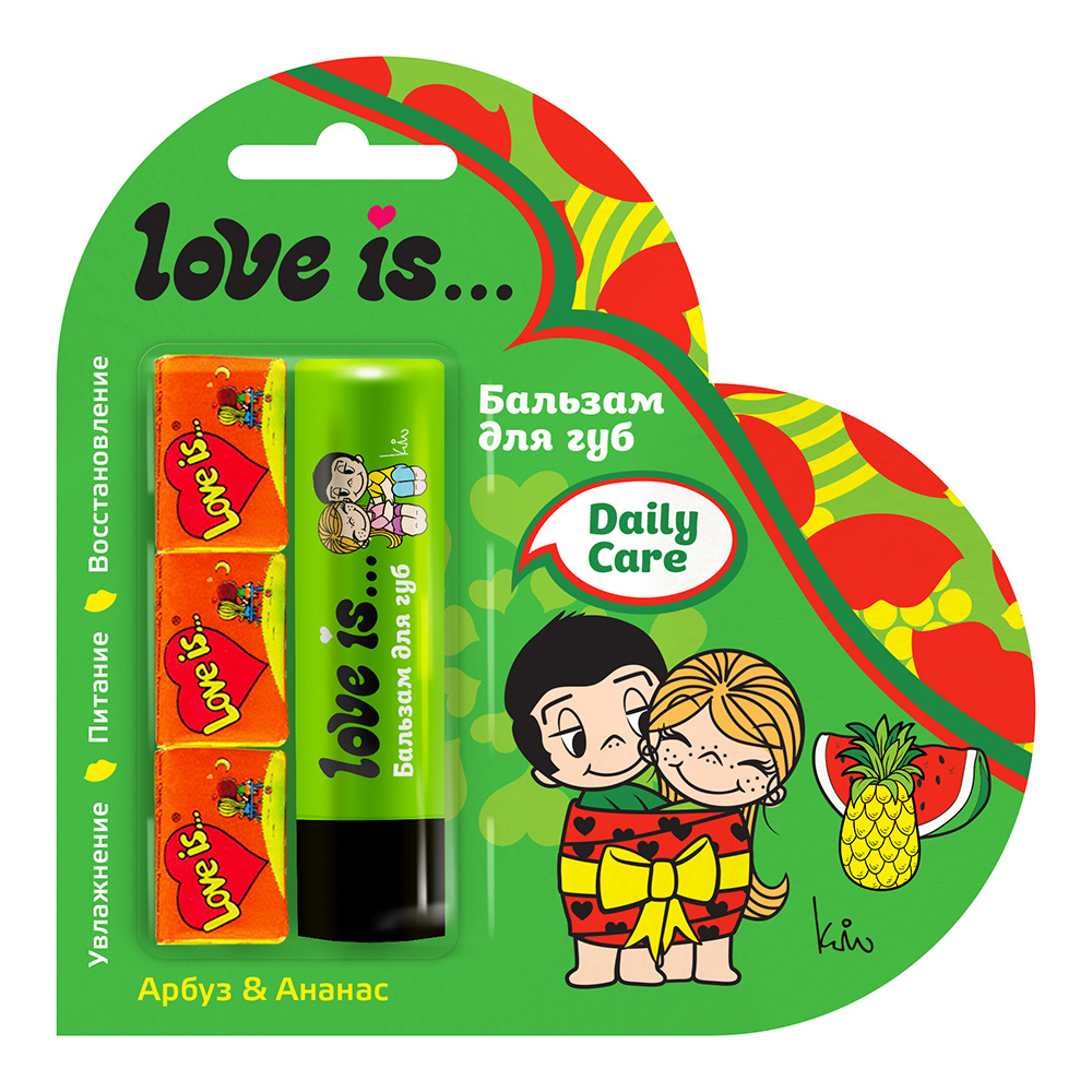 Бальзам для губ Love is Арбуз-ананас + жевательная резинка в подарок