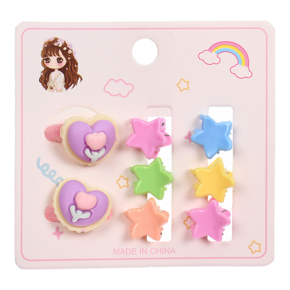 Набор для волос 753-464 Звездочки (6 крабиков + 2резинки), разноцветный
