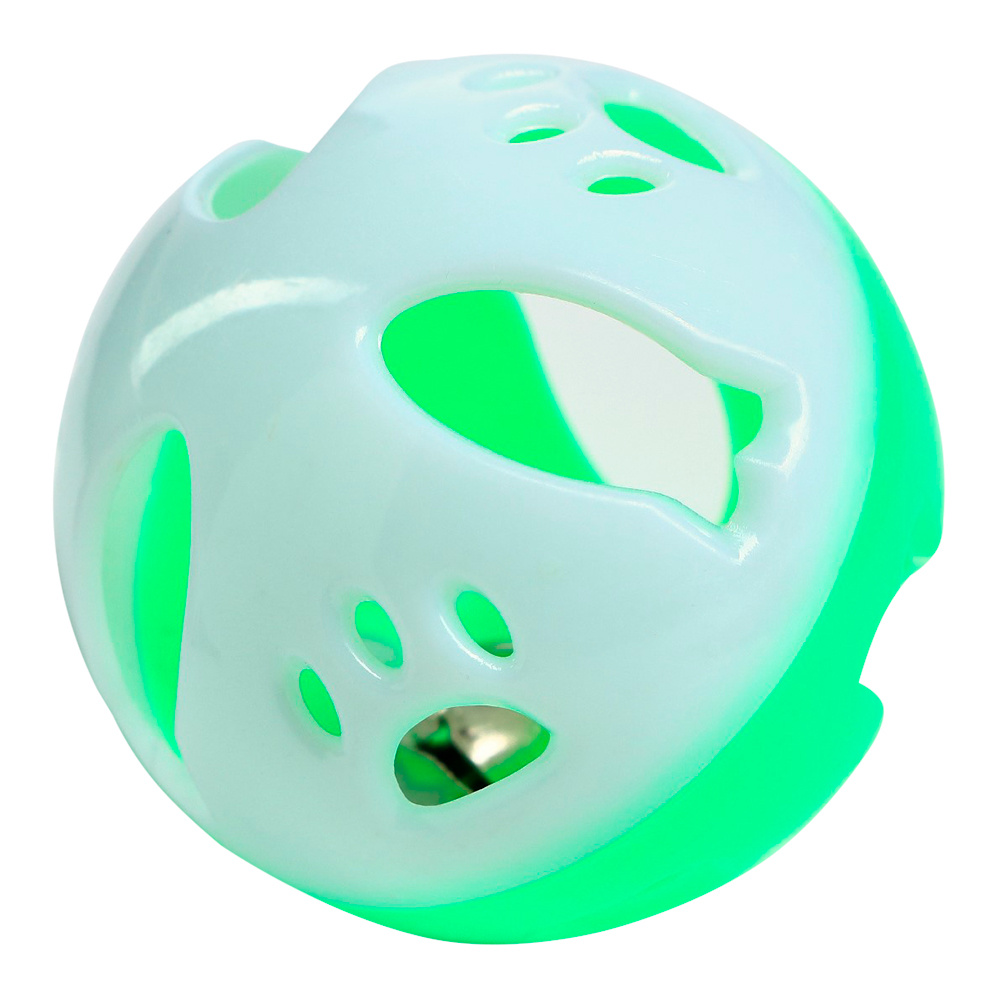 Игрушка для животных Пижон 7865598 Шарик с бубенчиком,Рыбки и лапки,бело-зеленый3,8см