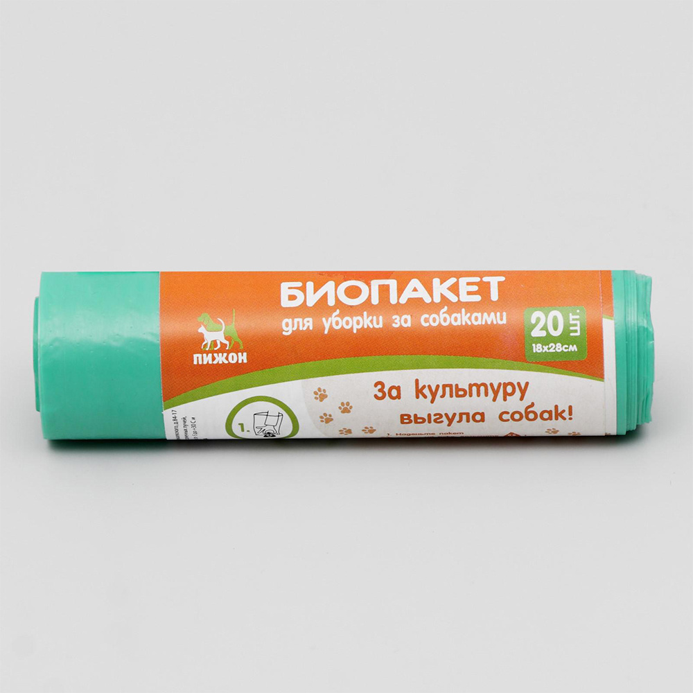 Пакеты для уборки за собаками Пижон 6784374 Био, зеленые, ПНД 15 мкм, 18*28см, 20 шт