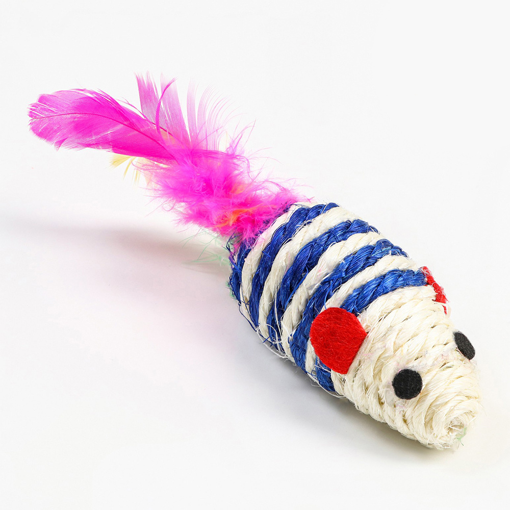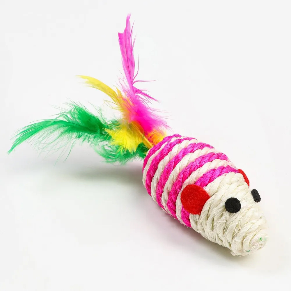 Игрушка для животных Пижон 1013034 Мышь из сизаля, с перьями