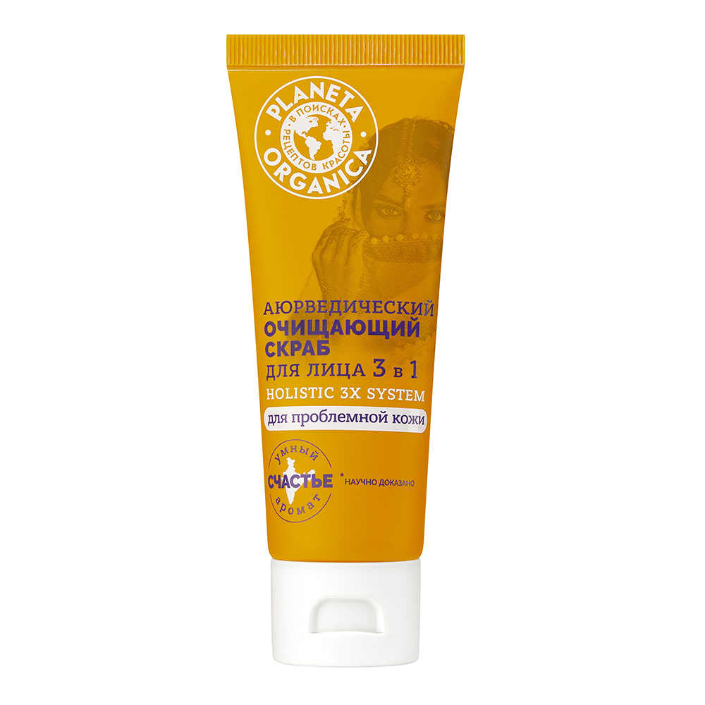 Скраб для лица Planeta Organica HOLISTIC 3Х SYSTEM аюрведический очищающий 3 в 1, 75 мл