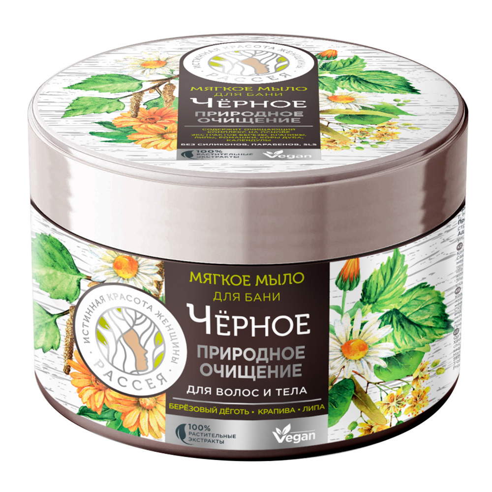 Мыло Рассея мягкое для волос и тела, Черное, 400 мл