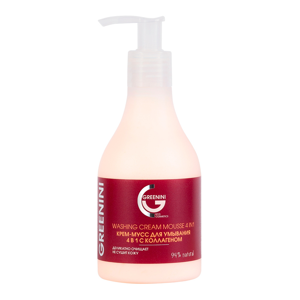 Крем-мусс для умывания Greenini 4 в 1 с коллагеном, 235 мл