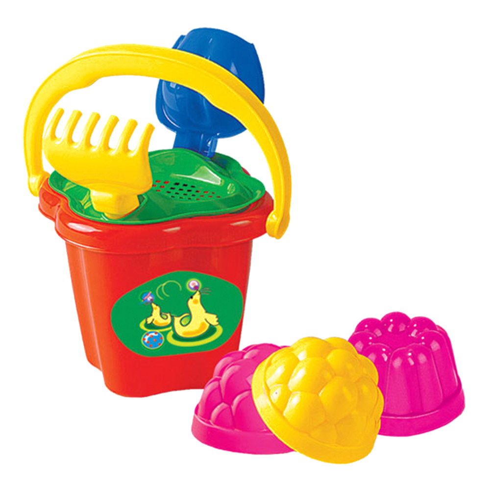 Набор для песочницы 51844 Полесье №531,ведро-замок большое,лопатка №5,4 формочки, 175*165*222 мм, пластик
