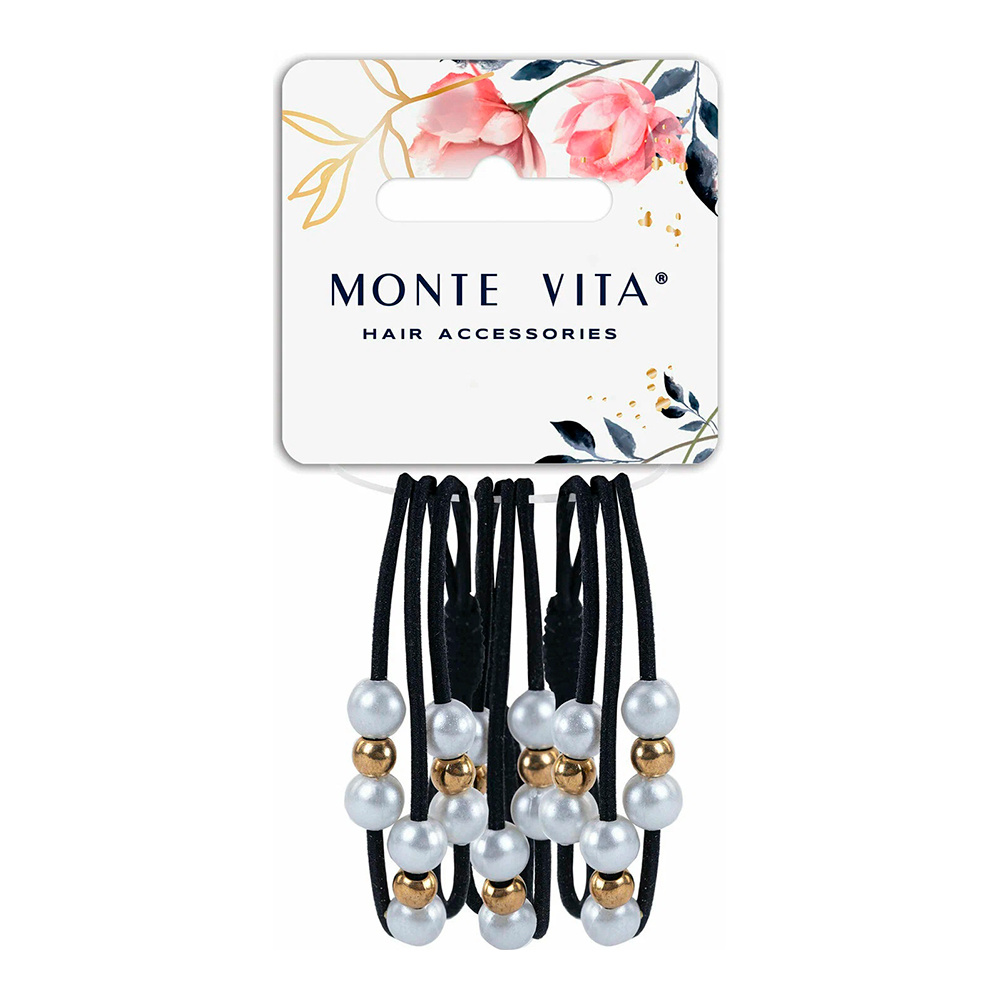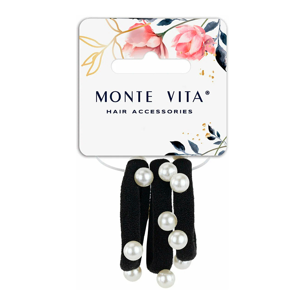 Резинка для волос 457053 Monte Vita, с жемчужинами, чёрные, 3 шт