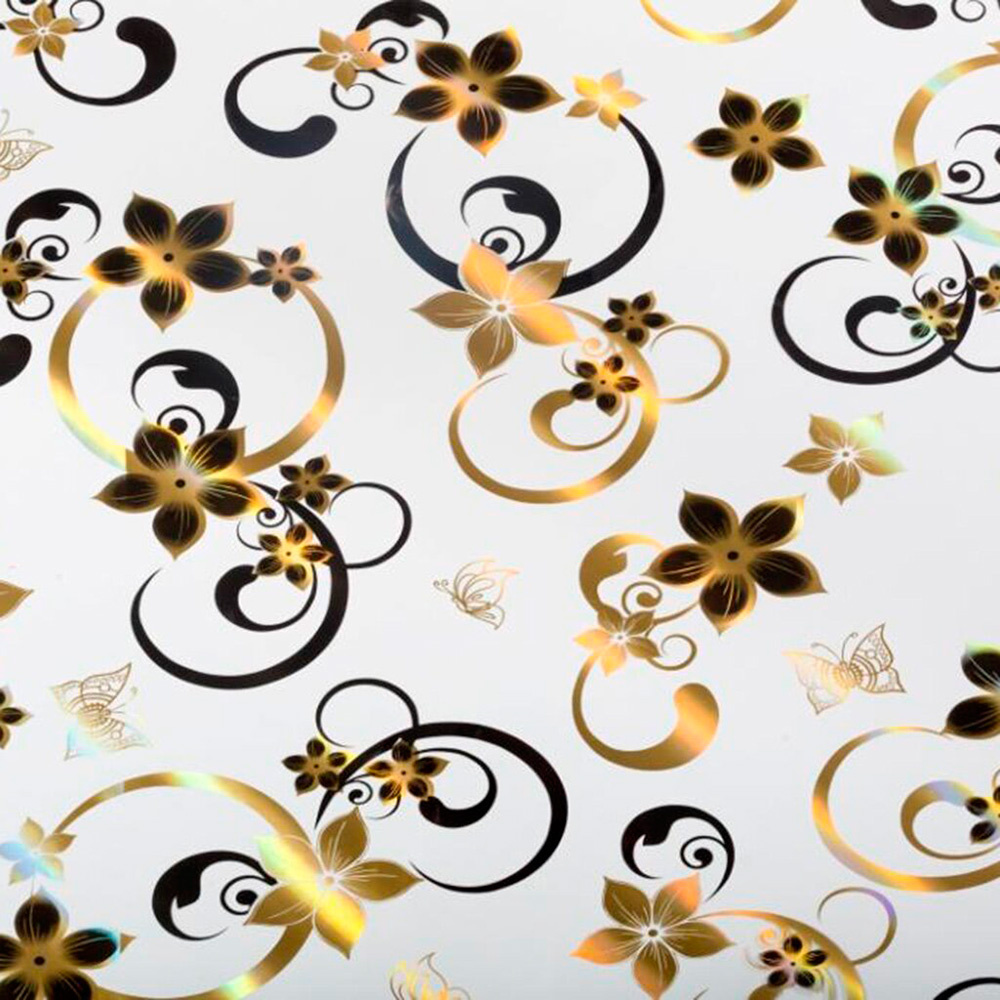 Клеенка термо 510749 прозрачная, Цветы золотые, Crystal, 0,8м*20м*0,6 мм, цена 10 см