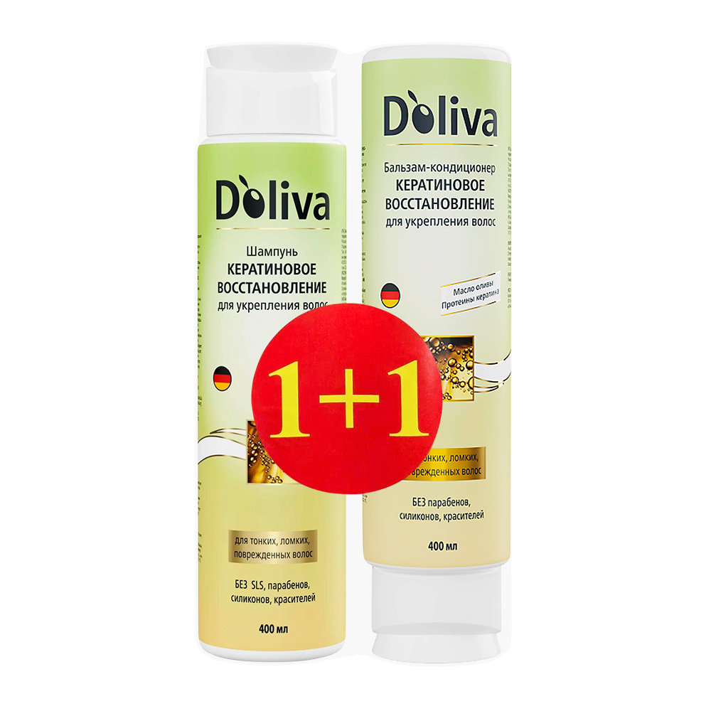 Шампунь для волос Doliva + бальзам-кондиционер 400 мл + 400 мл, Кератиновое восстановление, женский