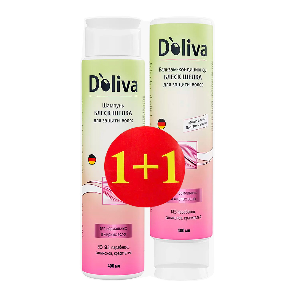 Шампунь для волос Doliva + бальзам-кондиционер 400 мл + 400 мл, Блеск шелка, женский