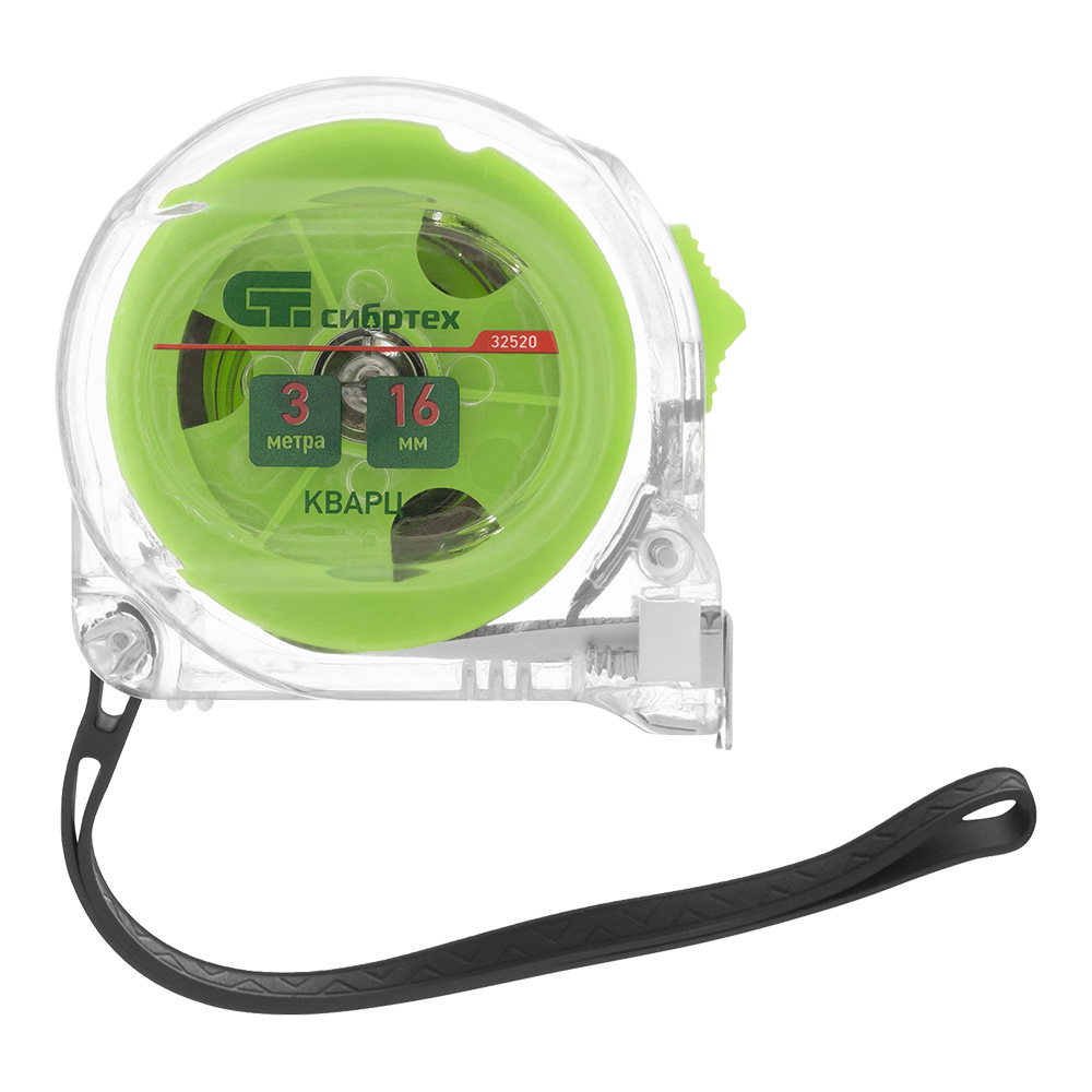 Рулетка Сибртех 32520 кварц, прозрачный корпус, амортизатор, 3 м