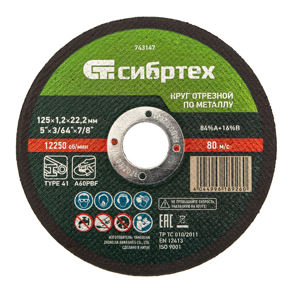 Круг отрезной по металлу Сибртех 743147 125*1,2*22,2 мм