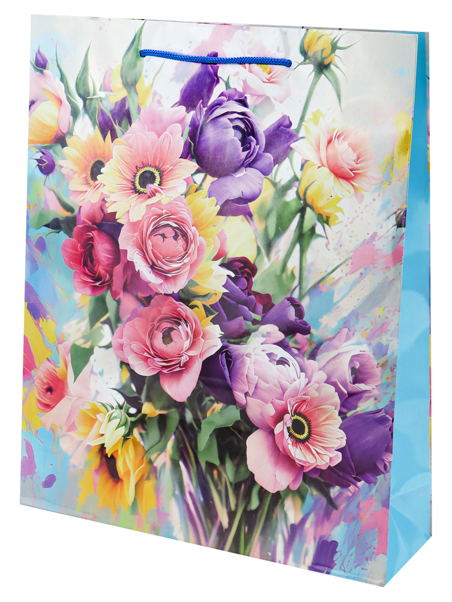 Пакет подарочный ППК-4459 Нарисованные цветы 26,4*32,7*8 см