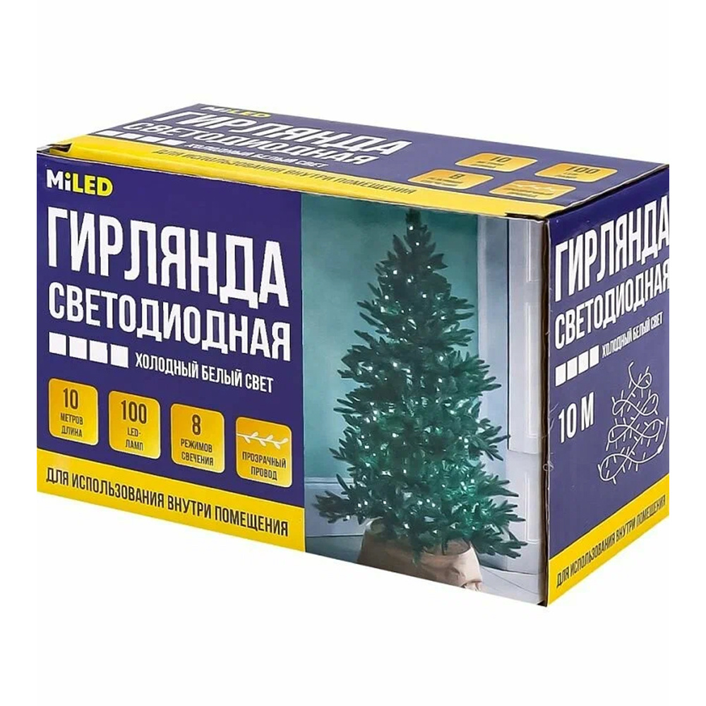 Новогодняя Гирлянда НУ-9780 светодиодная, метражная, 100 ламп, 8 режимов, холодный белый свет, 10 м
