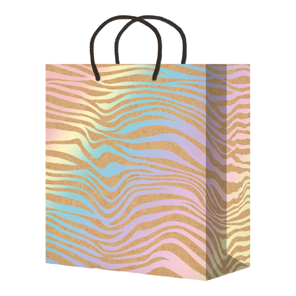 Пакет подарочный ППК-4387 из крафт - бумаги Разноцветная зебра 18*23*10 см