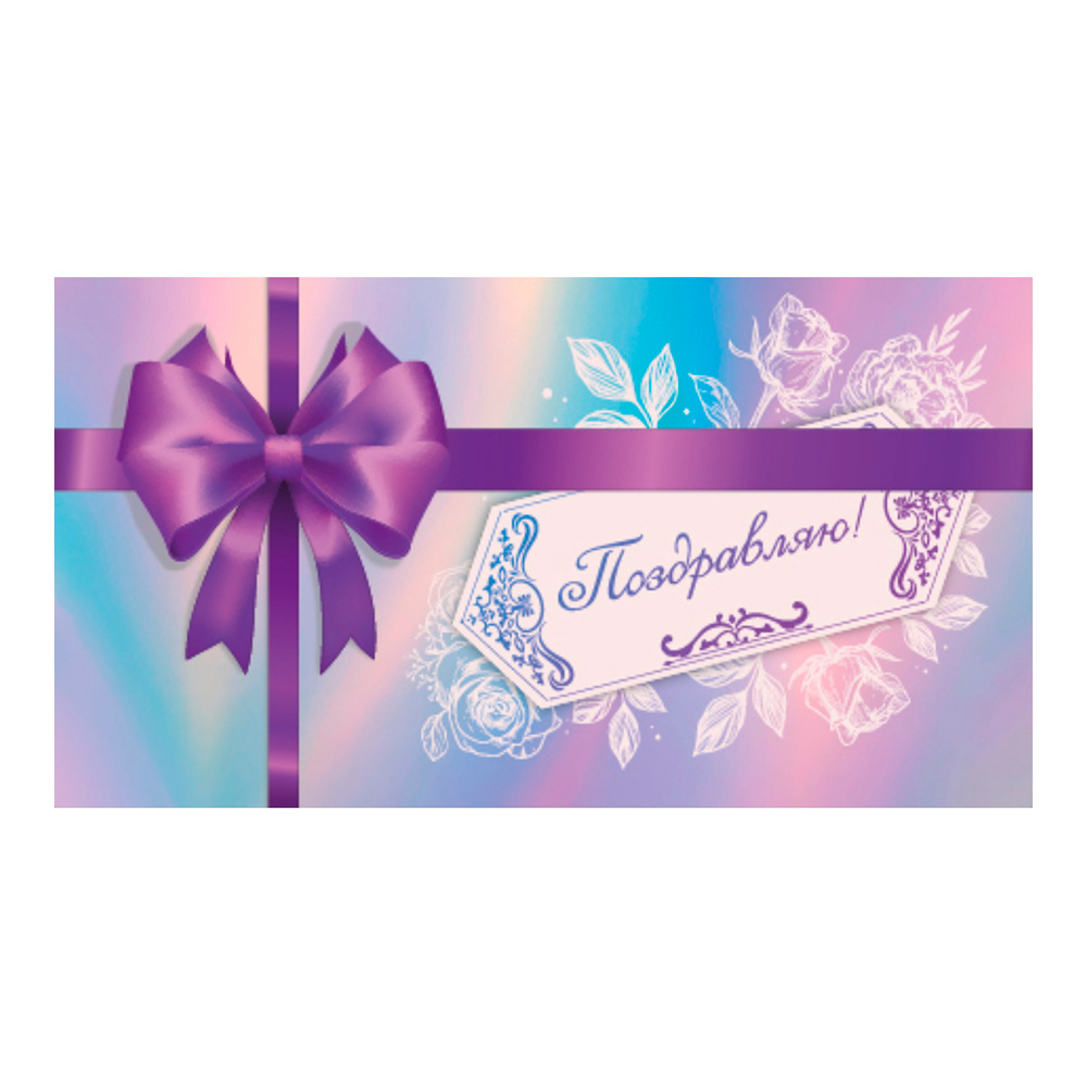 Конверт для денег 1-20-1175 Поздравляю, фиолетовый бант