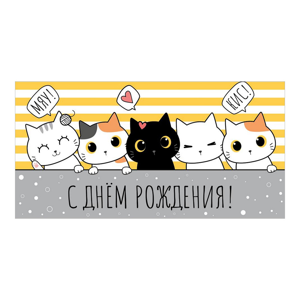 Конверт для денег 1-05-0269 С днем рождения!, веселые котики