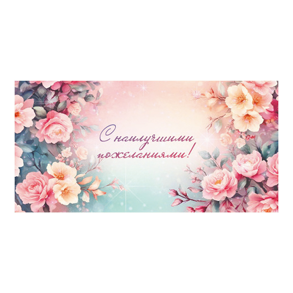Конверт для денег 1-05-0296 Нежные цветы, без текста