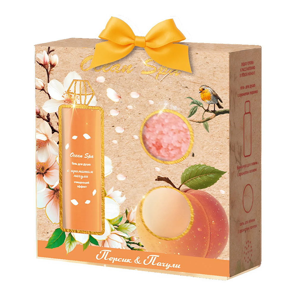 Набор подарочный Ocean Spa, Персик и пачули (гель для душа + бурлящий шар +соль с перламутром), женский