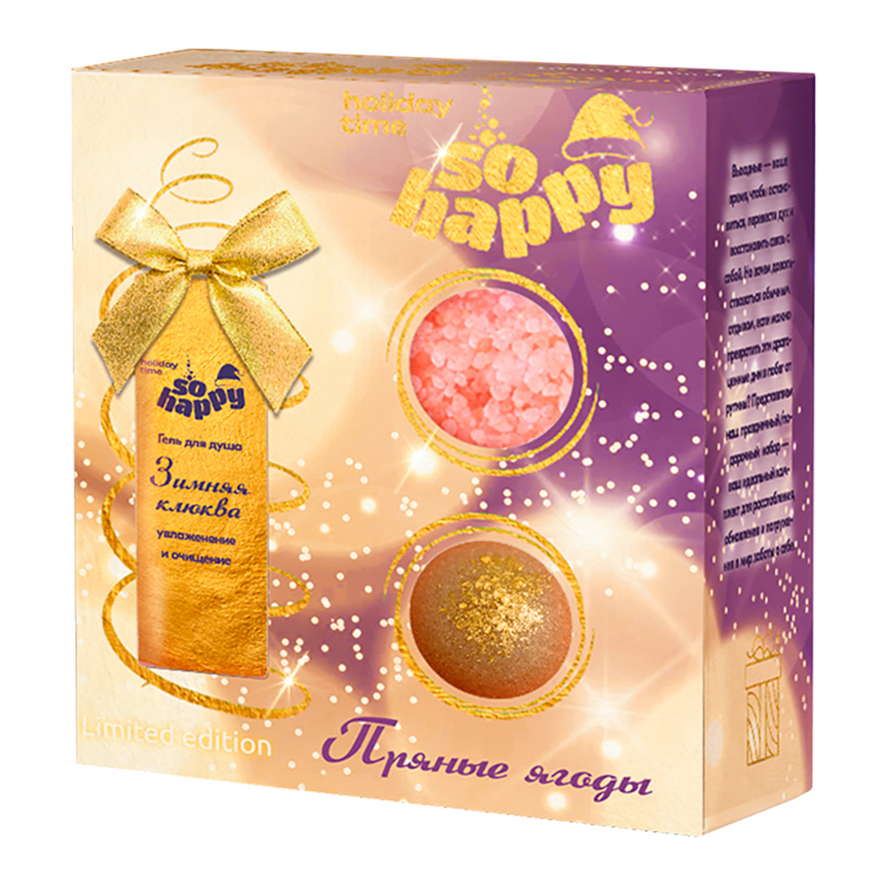 Набор подарочный So Happy holiday time, Пряные ягоды (гель для душа + бурлящий шар +соль с перламутром), женский