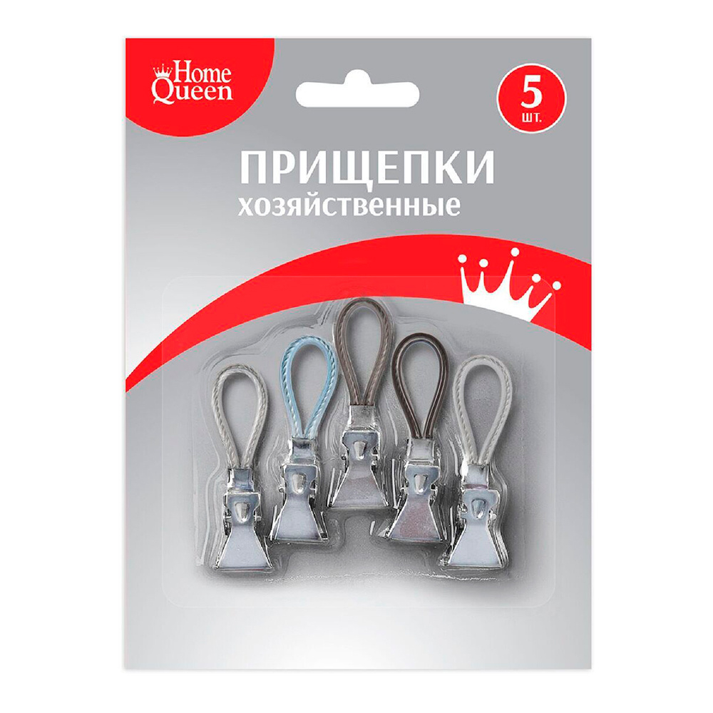 Прищепка пластик Home Queen 77517 для полотенец, пластик, серый, жемчужный, голубой и тёмно-сероый, 5 шт