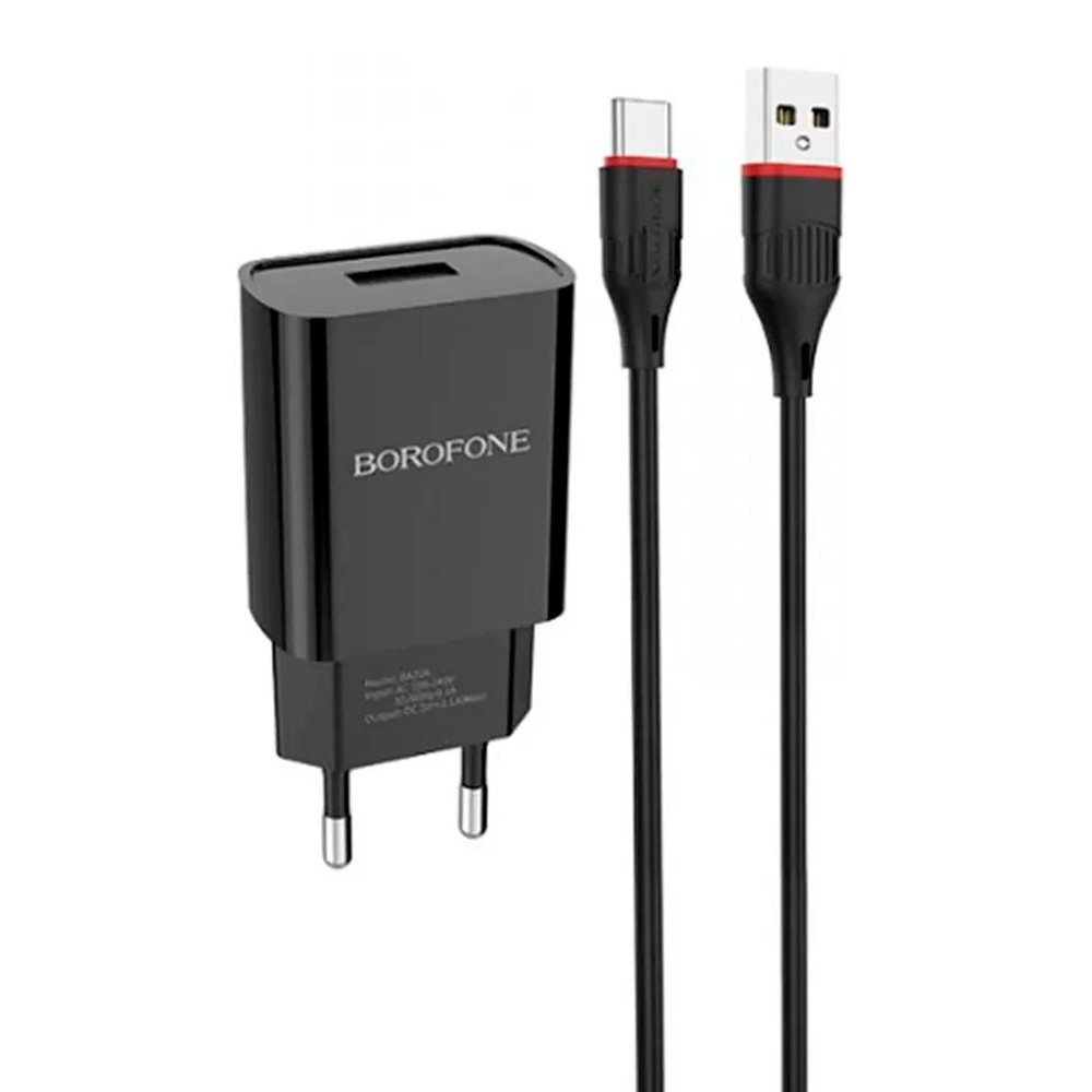 Зарядное устройство Borofone BA20A СЗУ 1USB 2.1A, черный
