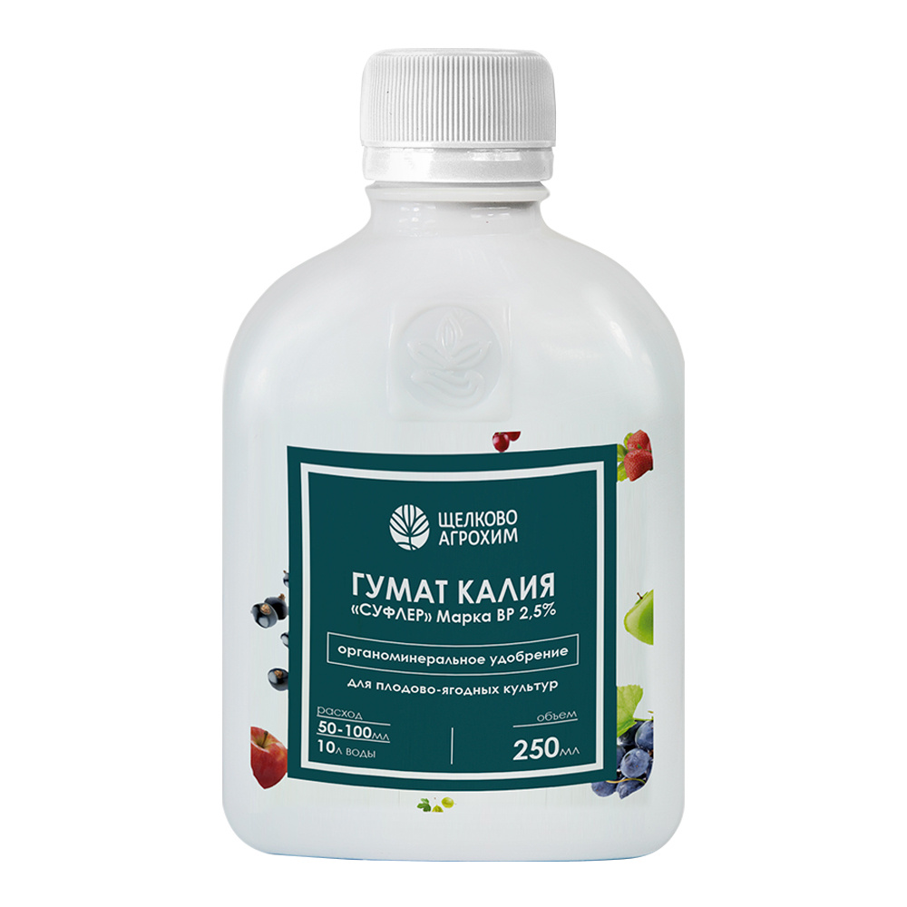 Подкормка для растений Щелково Агрохим Гумат Калия, Суфлер, для плодово-ягодных культур, 250 мл