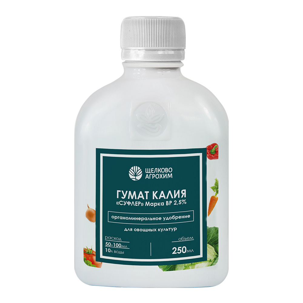 Подкормка для растений Щелково Агрохим Гумат Калия, Суфлер, для овощных культур, 250 мл