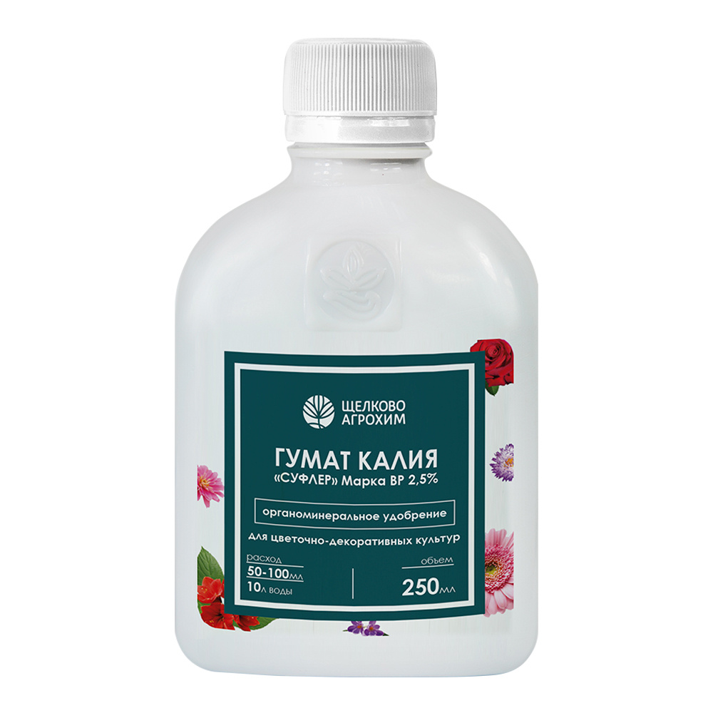 Подкормка для растений Щелково Агрохим Гумат Калия, Суфлер, для цветочно-декоративных, 250 мл